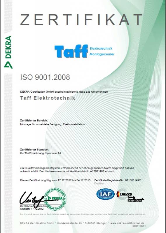 Seit 2006 ist unser Betrieb von der DEKRA zertifiziert. Qualität und Kundenzufriedenheit sind das oberste Ziel unseres Handelns.